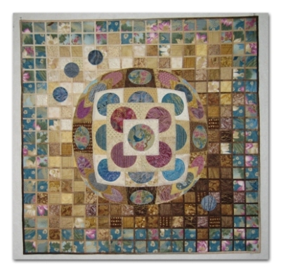 This is a 16" x 16" piece made for the Alliance of American Quilts challenge fund raiser to be auctioned off in the Fall of 2010.  The challenge this year is called "New from Old". My piece was awarded an Honorable Mention.